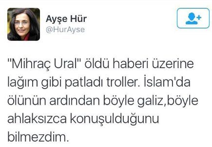 Mihraç Ural'ın öldürülmesinin ardından Türkiye'de kendisi için üzülen ilk kişi bir dönem Boğaziçi'nde ders veren Ayşe Hür oldu. Hür, planladığı katliamlarla tanınan Mihraç Ural için "Öldüğünü duyunca sarsıldım" dedi.