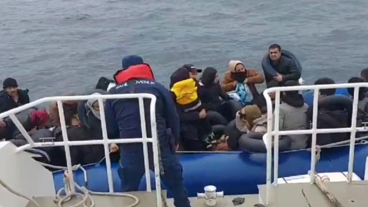 Bunun üzerine Sahil Güvenlik botu "KB-4510" ile bölgeye yönlendirilen ekipler, bottaki 38 düzensiz göçmeni kurtardı.