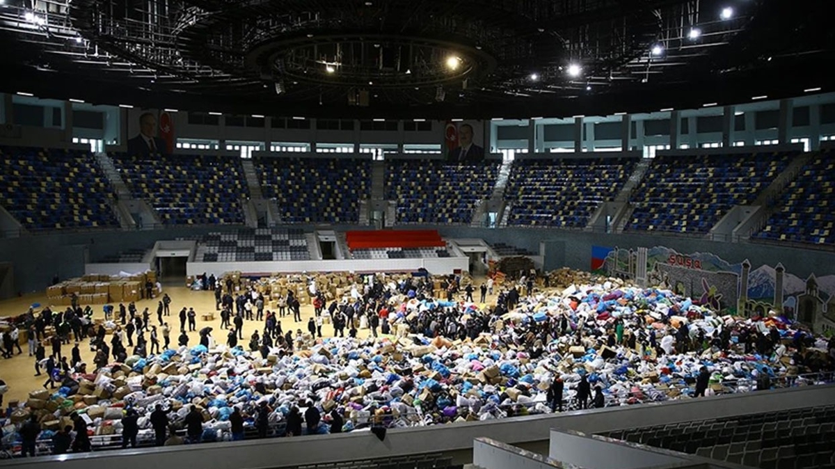 Azerbaycan'daki Türk iş adamlarının oluşturduğu "Türkiye Yüzyılı Birlik ve Dayanışma Platformu"nun başlattığı kampanyaya destek veren çok sayıda Azerbaycanlı, giysi, gıda ve ihtiyaç malzemesi yardımında bulundu. Toplanan malzemeler tırlara yüklenerek Türkiye'ye gönderildi. Haydar Aliyev Kapalı Spor Merkezi toplama alanı olarak tahsis edildi ve Azerbaycanlılar akın akın buraya malzeme getiriyor.