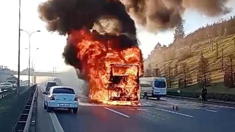 Bağcılar'da, seyir halindeki şehirler arası yolcu otobüsünde yangın çıktı. 24 yolcunun indirildiği otobüsü duman ve alevler sardı. Yangın itfaiye ekiplerinin müdahalesiyle söndürüldü.