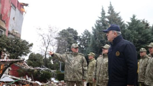 Akar beraberinde Genelkurmay Başkanı Orgeneral Yaşar Güler ve Kara Kuvvetleri Komutanı Orgeneral Musa Avsever ile Hatay'da deprem bölgesindeki çalışmalarını sürdürüyor.