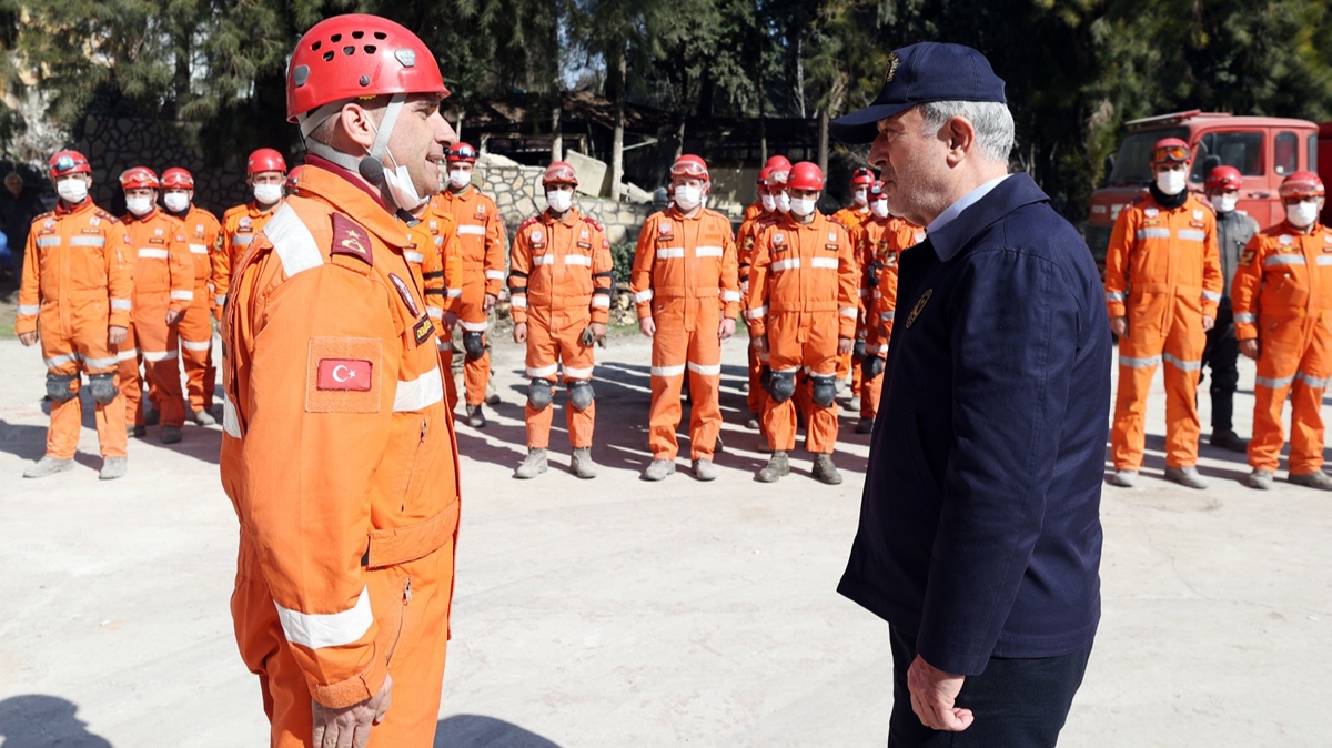 Depremin ardından 24 kişiyi enkaz altından canlı olarak kurtaran personeli kahramanlıkları ve fedakarlıklarından dolayı tebrik eden Akar, "Büyük fedakarlık ve kahramanlık gösterdiniz. Tüm zorluklara rağmen ilk andan itibaren halkımızın yanına koştunuz. Alınlarınızdan öpüyor, sizleri kutluyorum" dedi.