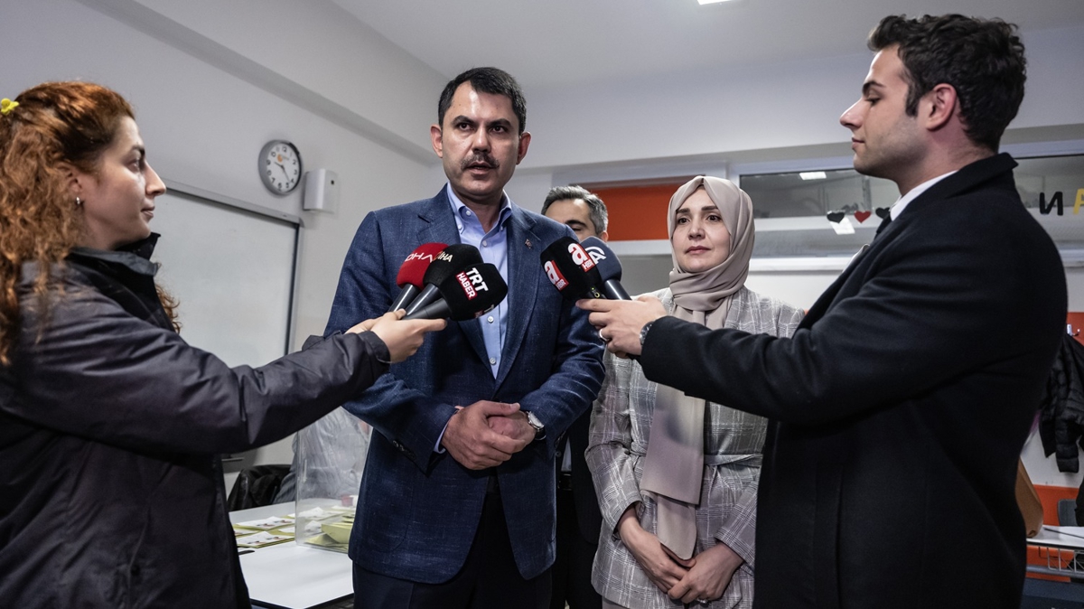 Çevre, Şehircilik ve İklim Değişikliği Bakanı Murat Kurum, Cumhurbaşkanı Seçimi ikinci tur oylaması için eşi Şengül Kurum ile saat 09.15'te TEB Ataşehir Ortaokulu'na geldi.