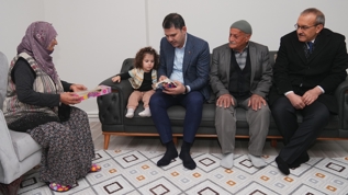 Bakan Kurum'dan köy evlerine taşınan depremzede aileye ziyaret... "Sizin mutluluğunuz her şeye bedel"