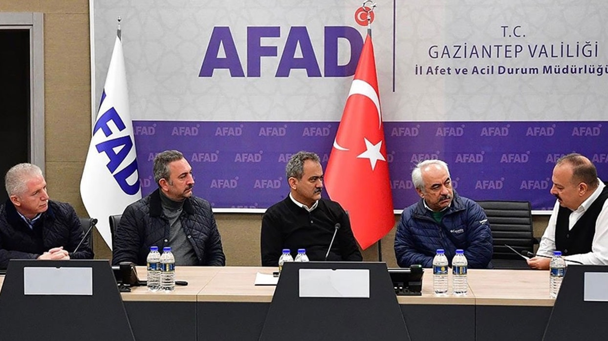 Milli Eğitim Bakanı Mahmut Özer, sosyal medya hesabından yaptığı açıklamada, "Gaziantep'te AFAD Koordinasyon Merkezi'mizi ziyaret ederek çalışmalar hakkında bilgi aldık. Vatandaşlarımızın tüm ihtiyaç ve taleplerini en hızlı şekilde karşılayacak, yaralarımızı kenetlenerek saracağız." ifadesini kullandı.