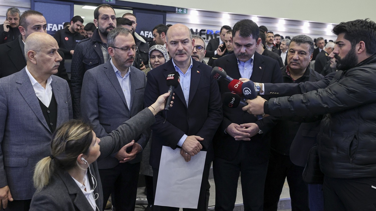 Depremden Hatay, Gaziantep, Osmaniye, Malatya, Adıyaman, Adana, Diyarbakır, Kilis ve Şanlıurfa'nın etkilendiğini dile getiren Soylu, "Şu anda bütün valilerimiz jandarma ve emniyet, TSK, AFAD ve Kızılay ekiplerimiz görevlerinin başında ilgili bölgelere sevk ediliyor. Biz de bakan arkadaşlarımızla beraber yola çıkıyoruz. Kahramanmaraş'a ben gideceğim. Hatay'a Tarım ve Orman Bakanımız gidecek. Gaziantep'e Murat Kurum, Osmaniye'ye Gençlik ve Spor Bakanı gidecek. Adıyaman'a Ulaştırma Bakanı İstanbul'dan şu anda geçiyor. Malatya'ya Kültür ve Turizm Bakanı gidecek. Sağlık Bakanımız ise buraya intikal ediyor." ifadelerini kullandı.
