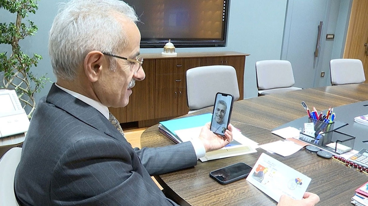 Ulaştırma ve Altyapı Bakanı Abdulkadir Uraloğlu, "Cumhuriyetimizin 100'üncü Yılına Mektup Kampanyası" kapsamında makamına mektup yazan PTT çalışanı Kemal Keskin'i görüntülü aradı.