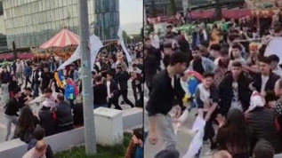 Bursa Kent Meydanı'nda cep telefonu kamerasıyla kaydedilen görüntülerde, Yeşil Sol Parti'nin Bursa'da düzenlediği mitinginden ayrıldığı belirtilen bir grubun, Sanayi ve Teknoloji Bakanı ve AK Parti Bursa Milletvekili Adayı Mustafa Varank'ın mobil seçim aracı ve önünde bulunanlara saldırması yer aldı.