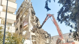 Çevre sakini Kemal Berker, yaklaşık 40 yıllık olan 5 katlı binada kentsel dönüşüm çalışmaları kapsamında yıkım ekiplerinin çalıştığını söyledi.