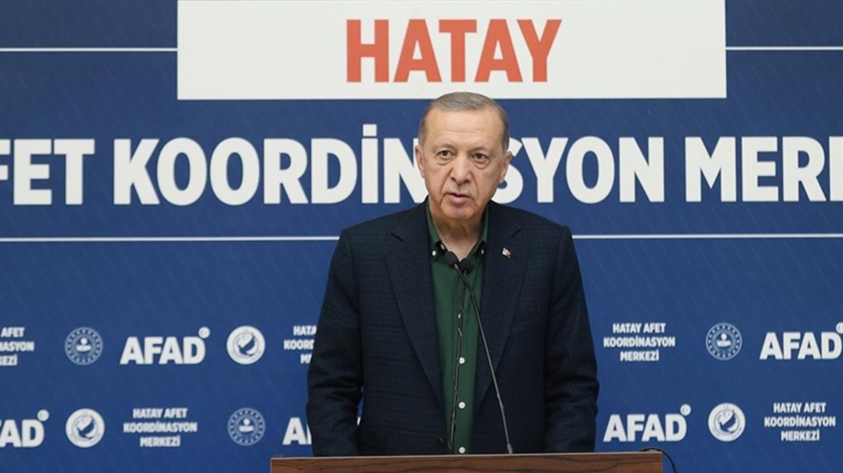 Daha sonra Hatay Afet Koordinasyon Merkezi'nde açıklamalarda bulunan Erdoğan, "asrın felaketi" olarak nitelenen 6 Şubat depremlerinin üzerinden 2 hafta geçtiğini belirterek, Türkiye'nin 11 ilinde yıkıma ve büyük can kaybına yol açan bu afetin, Türkiye'nin depremiyle, yangınıyla, seliyle ve diğer tüm tehditleriyle zorlu bir coğrafyada olduğu gerçeğini bir kez daha hatırlattığını ifade etti.