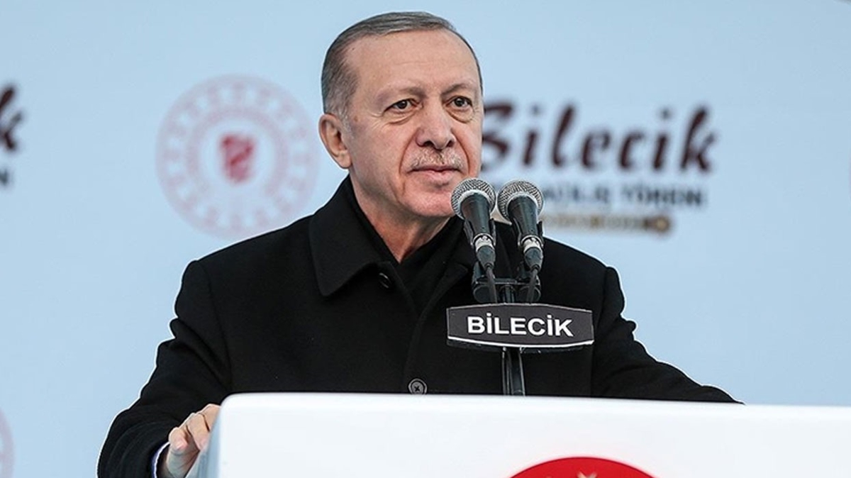 Başkan Erdoğan, "Bilecik'e son 20 yılda toplam 20 milyar lira tutarında kamu yatırımı yaptık. Yapımı süren Bandırma-Bursa-Yenişehir-Osmaneli Hızlı Tren Hattı'nı inşallah 2025 yılında bitiriyoruz." dedi.