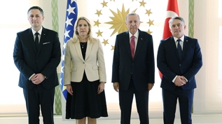Cumhurbaşkanı Recep Tayyip Erdoğan, Bosna Hersek Devlet Başkanlığı Konseyinin Boşnak üyesi Denis Becirovic, Hırvat üyesi Zeljko Komsic ve Sırp üyesi Zeljka Cvijanovic ile bir araya geldi.