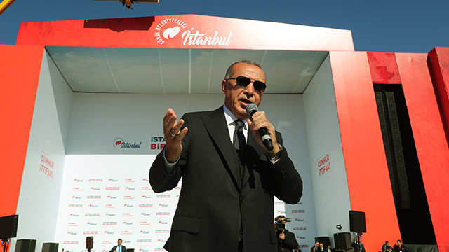 İstanbul'un Ebu Eyyub el-Ensari'nin rüyası, Fatih Sultan Mehmed'in emaneti, Yavuz Sultan Selim'in gözbebeği, Kanuni Sultan Süleyman'ın nefesi, Sultan Abdülhamit'in namusu olduğunu ifade eden Erdoğan, "Bu şehir ki Gazi Mustafa Kemal'in son nefesidir. Şehit Başbakan Adnan Menderes'in hayalidir. Merhum Turgut Özal'ın rüyasıdır. Merhum Necmettin Erbakan Hocamızın duasıdır. Merhum Alpaslan Türkeş'in sevdasıdır. Bu şehir bizim de hizmetkarı olmaktan şeref duyduğumuz, davamız, aşkımız, sevdamız, hayalimiz, duamız, her şeyimizdir. İstanbul'u halkıyla bir olup 25 senede bu şehri sadece -CHP ne demektir, çöp, çukur, çamur- bunlardan kurtarmakla kalmadık, bölgesinin ve dünyanın parlayan yıldızı hale getirdik. Asırlar sonra İstanbul'u yeniden dünyanın merkezi şehirlerinden biri yaptık." değerlendirmesini yaptı.