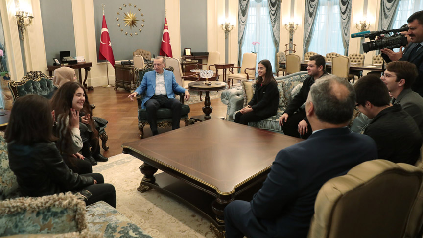 Başkan Erdoğan çaya davet ettiği öğrencileri Külliye'de ağırladı