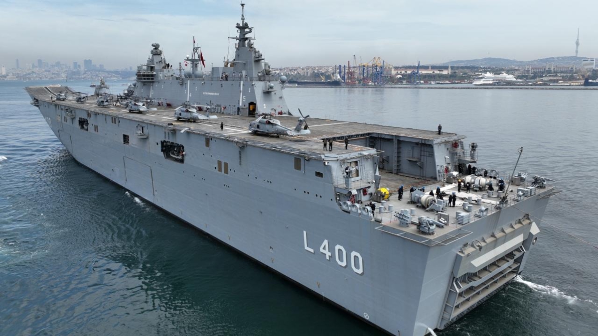 TCG Anadolu İstanbul Boğazı'nda geçiş yaparak halkı selamladı.