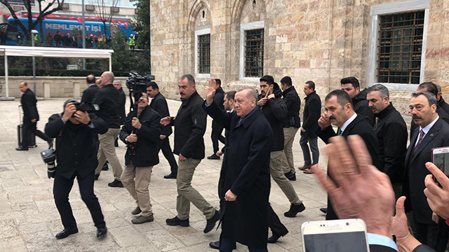 Cuma namazını tarihi Ulu Cami'de kılan Cumhurbaşkanı Erdoğan, camiye gelişinde ve buradan ayrılırken kendisine sevgi gösterisinde bulunan vatandaşları selamladı.