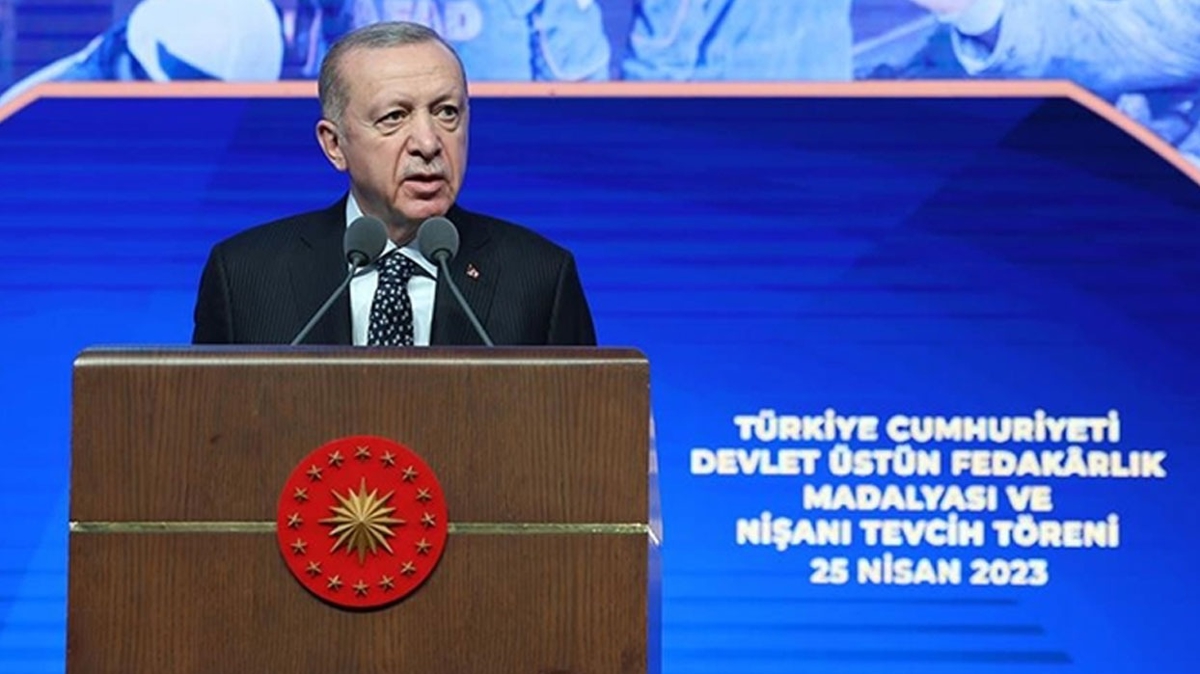 Deprem sonrası çalışmalarda sembolleşen isimler, kurumlar ile ekiplerin yerli ve yabancı temsilcilerine Devlet Üstün Fedakarlık Madalyası ve Nişanı takdim ederek, deprem bölgesindeki çabaları dolayısıyla şükranlarını sunduğunu belirten Erdoğan, madalya ve nişan alanlarla birlikte arama kurtarma ekiplerine, madencilere, itfaiyecilere, belediyelere, kamu görevlilerine, sivil toplum kuruluşlarına, gönüllülere, yardım çağrısına destek veren tüm yabancılara teşekkür etti.