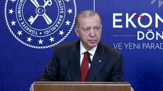 Başkan Erdoğan konuşmasında, ekonomide gelişmelere ilişkin önemli mesajlar verdi. Erdoğan, ''Kendi özgün ekonomi modelimizi oluşturduk. Açıkça itiraf etmek isterim ki; ülkemize karşı haksız şekilde uygulanan siyasi ve ekonomik yaptırımlar bizi bu yolu aramaya mecbur bırakmıştır'' dedi.