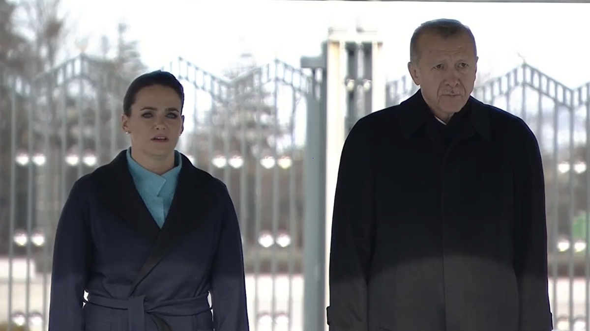Erdoğan ve Novak'ın tören alanındaki yerlerini almasının ardından 21 pare top atışı eşliğinde iki ülke milli marşları çalındı.