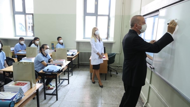 Erdoğan, "Türkiye'yi, geleceğe yatırım olarak gördüğümüz eğitim-öğretim alanında yükseltmeye devam edeceğiz" ifadelerini kullandı.