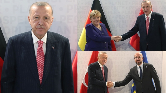 Başkan Erdoğan, Almanya Başbakanı Merkel'i kabul etti ve AB Konseyi Başkanı Charles Michel ile de bir araya geldi.