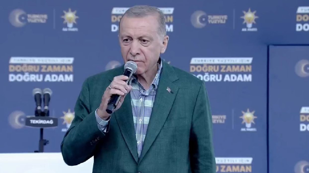 Alanda çalınan "Duyanlara duymayanlara" şarkısına eşlik eden Erdoğan, "Biz Tekirdağ'ı çok seviyoruz. 14 Mayıs'ta daha çok seveceğiz. Hazır mıyız 14 Mayıs'a, hazır mıyız? Şu ihtişama bak. 14 Mayıs'ta da Tekirdağ'a da zaten bu yakışır. Ben inanıyorum ki Tekirdağ 14 Mayıs'ta bugüne kadar olmamış bir patlamayı yapacak. Özel takip edeceğim. Tekirdağ önemli, çok önemli. Trakya'nın başını çekecek. Bugün Edirne de güzeldi, Kırklareli de güzeldi. İnşallah Tekirdağ'dan güzel sesler duyacağız. Sağ olun, var olun." ifadelerini kullandı.