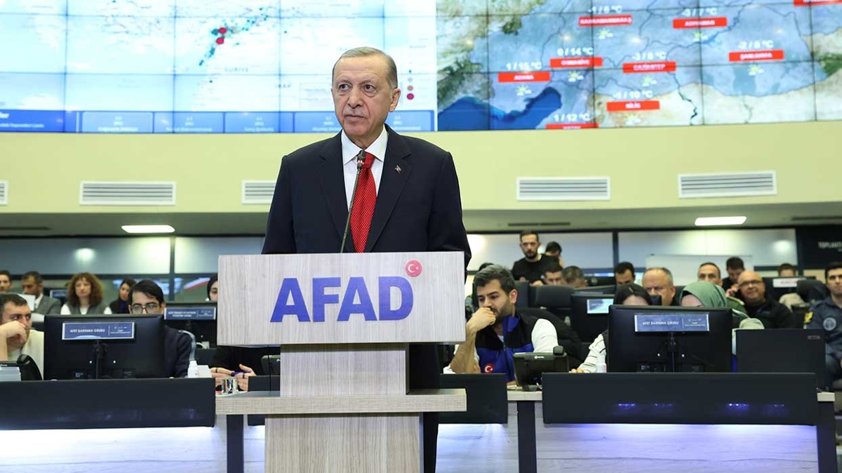 Erdoğan, devletin tüm kurumları, personeli ve ekipmanıyla, milletin de yediden yetmişe tüm fertlerinin seferberliğiyle depremzedelerin yanında yer almak için anında harekete geçtiğini, çetin kış şartlarıyla, şiddetli yıkımın yol açtığı alanın büyüklüğüne rağmen fevkalade bir mücadeleyle başlattıkları arama kurtarma ve yardım çalışmalarına devam ettiklerini söyledi.