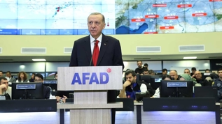 "250 bin görevlimizin ve topyekun milletimizin gayretleriyle çalışmalar hızlandırılmıştır. Asrın felaketini birlikte omuzladığımız, kamu personeliyle, sivil toplum mensubuyla, gönüllüsüyle herkese şükranlarımızı sunuyoruz. Hem arama kurtarma faaliyetleri hem bugünkü yardım kampanyası hem de taziye ve geçmiş olsun mesajlarıyla yanımızda yer alan dost ülkelere teşekkür ediyorum. Önce arama kurtarma çalışmalarını tamamlayacak, enkaz altında tek bir insanımızı bırakmayacak, bununla birlikte iaşe ve ibate hizmetlerini hiç kimsenin mağduriyetine meydan vermeyecek şekilde yürüteceğiz."
