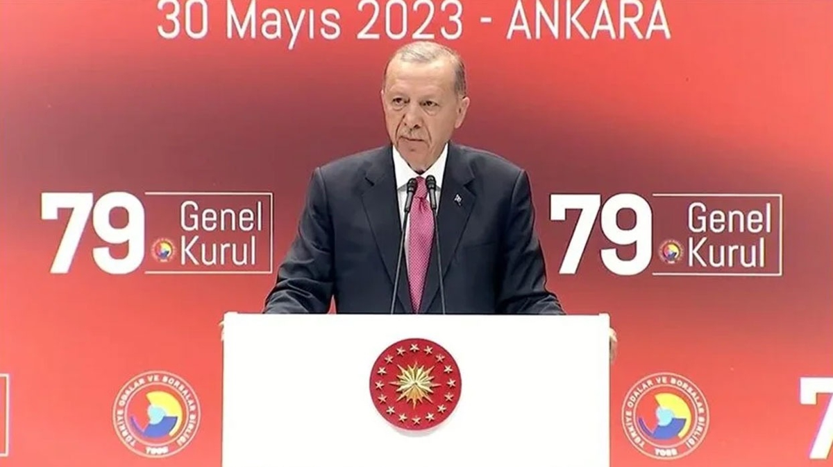 TOBB'un 79'uncu Genel Kurulu münasebetiyle üyelerle bir arada olmaktan duyduğu memnuniyeti dile getiren Erdoğan, Genel Kurulun, TOBB, iş dünyası ve ülke için hayırlı olmasını diledi.