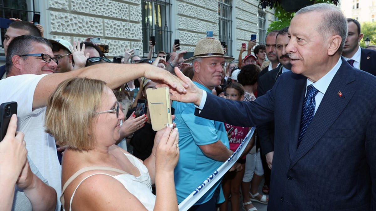 Başkan Erdoğan, Macaristan'ın Kuruluş Günü kutlamaları dolayısıyla bulunduğu Budapeşte'de kendisine sevgi gösterisinde bulunan vatandaşlarla selamlaştı