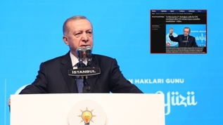 Haberde, "İnsan Hakları Evrensel Bildirgesi'nin 75'inci yıl dönümü öncesinde İstanbul'da tıklım tıklım dolu bir salonda konuşan Erdoğan, 'İsrail, tüm insanlığı utandıracak zulüm ve katliamlar gerçekleştirdi' dedi. 'Gazze'de insanlığa dair tüm değerler katlediliyor. Bu vahşet karşısında uluslararası kurumlar ve insan hakları örgütleri bu tür ihlalleri önlemek için somut adımlar atmıyor' dedi." ifadelerine yer verildi.