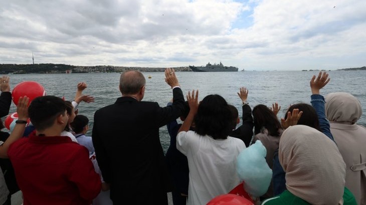 Proto Thema "TCG Anadolu, Erdoğan'ın bakışları altında İstanbul Boğazı'nı geçti" başlığını kullandı.