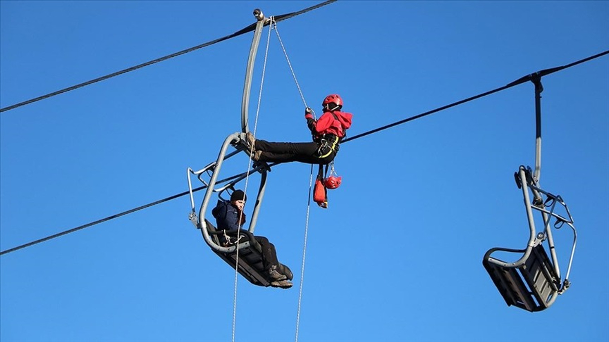 Ekipler kayak merkezinde bu kapsamda telesiyejden kurtarma ve arazide kaybolanları bulma tatbikatı yaptı.