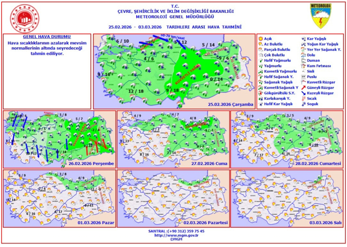 25 ŞUBAT 2026 ÇARŞAMBA HAVA DURUMU TAHMİNLERİ