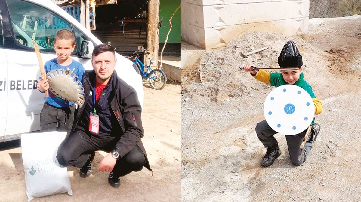 Kendisine jant kapağından bir kalkan ve tahta parçasından da kılıç yapıp oyun oynayan Avcı'nın görüntüleri hafızalara kazınmıştı.