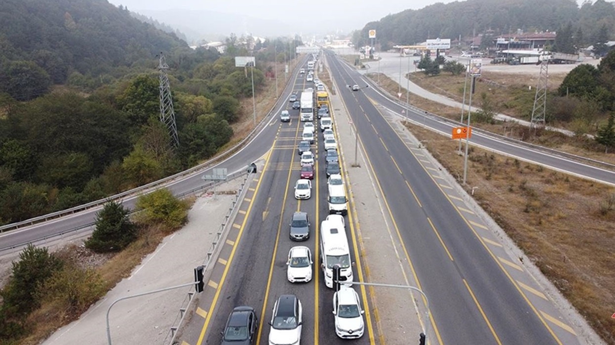 D-100 kara yolunu kullanan sürücüler, Abant gişelerinden tekrar Anadolu Otoyolu'na giriş yaparak yollarına devam ediyor.