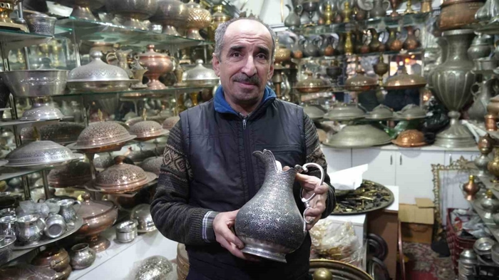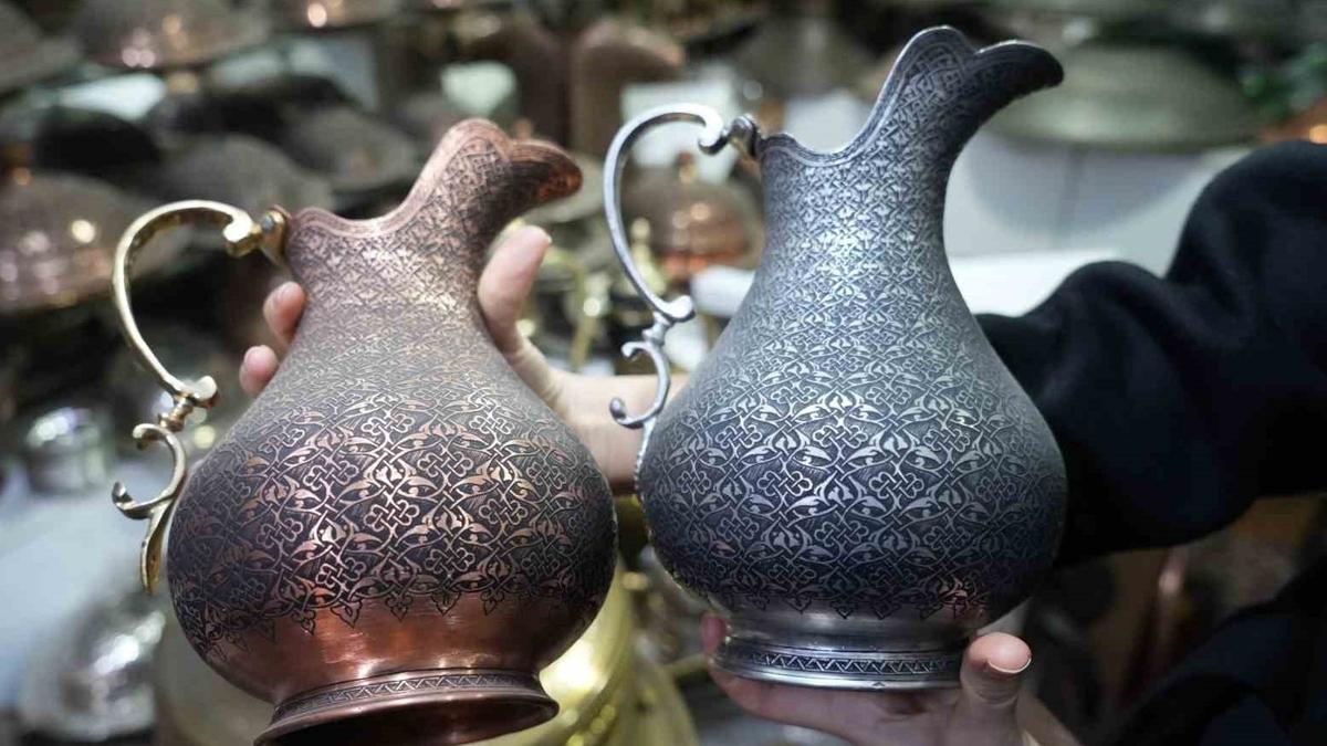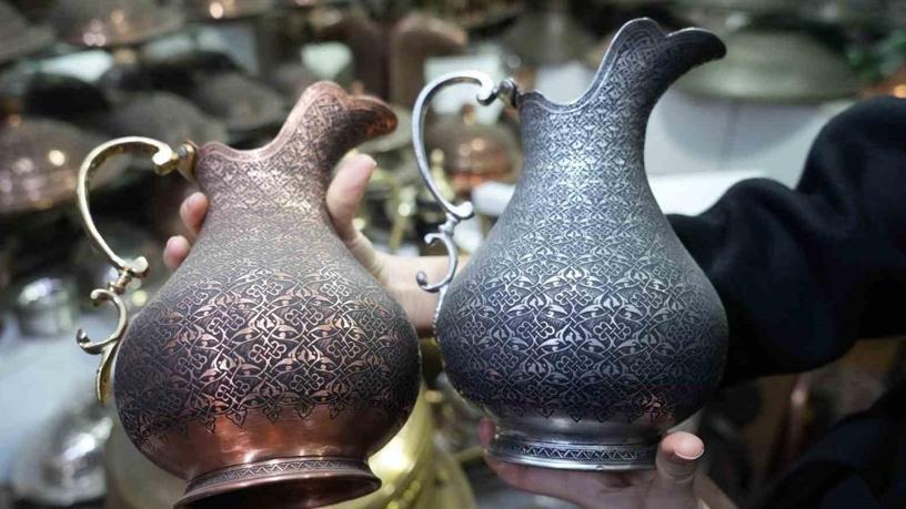 Gaziantep'te 44 yıldır bakır işleyen 55 yaşındaki Kamil Şingin, el emeğiyle yaptığı sürahileri 40 bin TL'ye satıyor.