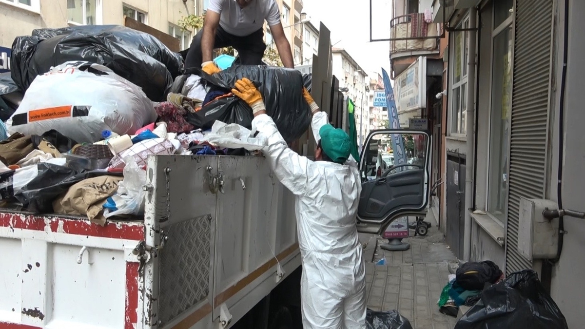 Evin temizlenmesi için çalışma başlatan belediye ekipleri, 3 kamyon atığı evden çıkardı. Daire, temizlik çalışmasının ardından ilaçlandı.