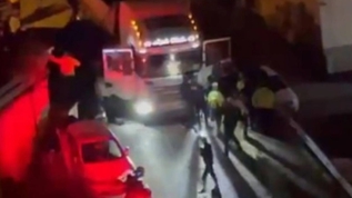 İstanbul'da 14 aracı ezen kamyon sürücüsü polis ekiplerinin yaptığı çalışmayla yakalandı. Yakalanma görüntüleri çevredeki vatandaşların telefon kamerasına anbean kaydedildi.