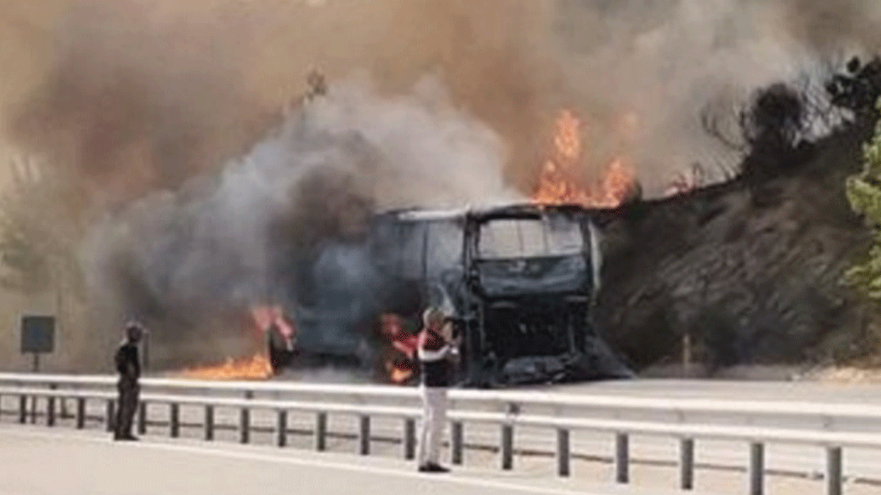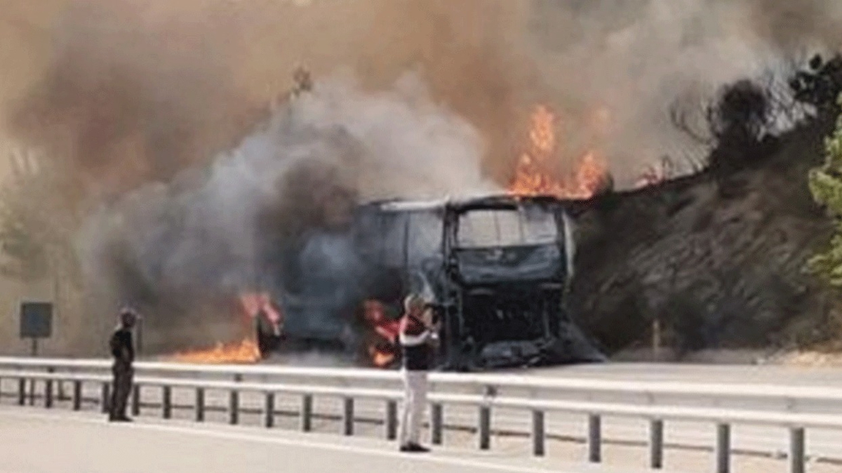 Çanakkale'de içinde 23 yolcusu bulunan yolcu otobüsü alev alev yandı