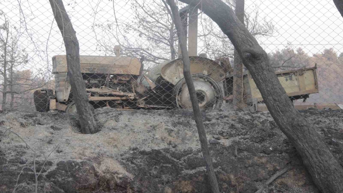 Çanakkale'de çıkan orman yangını yerleşim alanlarını da küle çevirdi. Yangında büyük hasar alan Yağcılar Köyü'nde ise mezarlıklar alevlere teslim oldu.