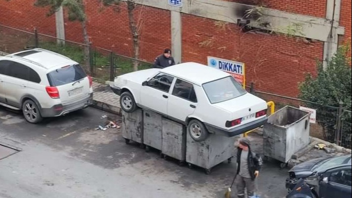 Çöppark! Park eden sürücüye sinirlendi, arabasını çöpe attı