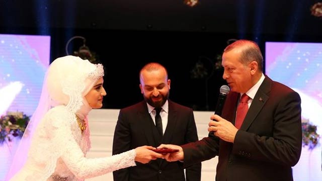 Cumhurbaşkanı Erdoğan'ın eşi Emine Erdoğan ile katıldığı düğünde, çiftin nikah şahitliklerini Erdoğan, TBMM Başkanı İsmail Kahraman, Başbakan Binali Yıldırım ve Genelkurmay Başkanı Orgeneral Hulusi Akar yaptı.