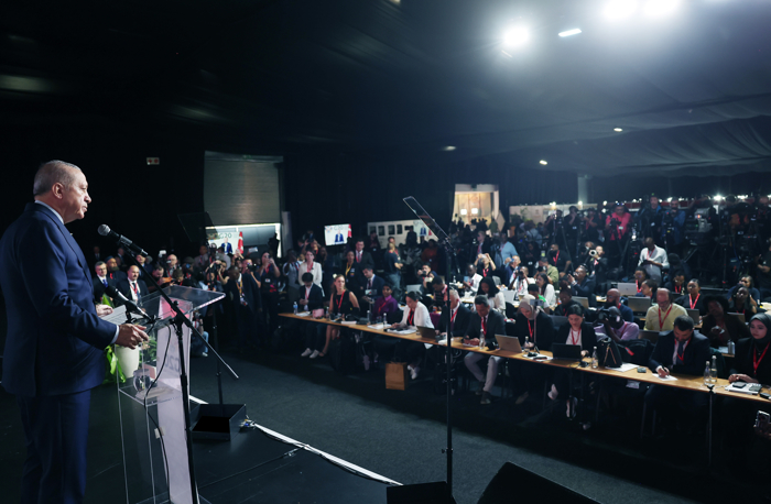 Cumhurbaşkanı Erdoğan, "Özellikle Orta Doğu'daki, Gazze'deki savaşın bir soykırım olduğu açık, net ortada. Gazze'de, Filistin'de bütün bu soykırımı görmezden gelmemiz mümkün değil. Bu soykırımın faili Netanyahu'dur, İsrail'dir." şeklinde konuştu.