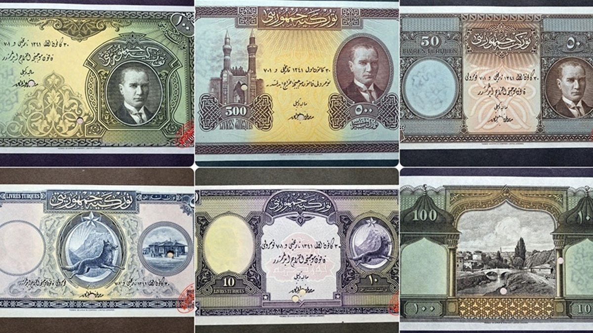 Cumhuriyet'in ilk 15 yılına ait kağıt paralar arasında, Fransız matbaa şirketi Thomas De La Ruse Company tarafından 1925'te Londra'da basılarak Ankara'ya gönderilen Osmanlıca ve Fransızca yazılı banknotlar yer alıyor. Bu paralar, Atatürk'ün emriyle basılan ilk banknotlar olarak dikkati çekiyor.