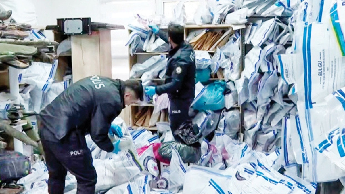 Hatay'da yıkılan binaların enkazında bulunan telefon, tablet ve bilgisayarlar, polis ekiplerince tutanakla alınıp özel depoda muhafaza ediliyor.