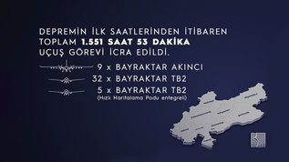 Baykar'ın Twitter hesabından yapılan paylaşımda, "Depremin gerçekleştiği ilk günden itibaren 9 Bayraktar #AKINCI ve 37 #BayraktarTB2 afet bölgesinde toplam 1.551 saat 53 dakika görev uçuşu icra etti. Milli İHA'larımız halihazırda bölgede görev uçuşlarına devam ediyor. Milletimiz için varız, milletimizin yanındayız." ifadeleri kullanıldı.