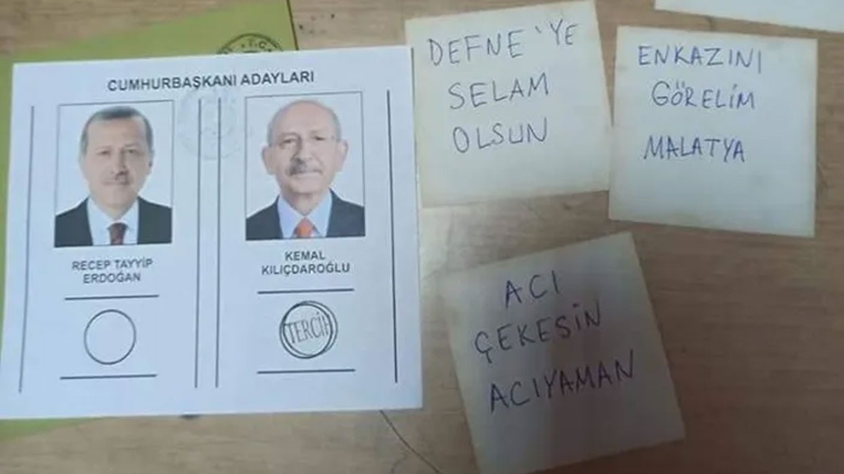 Tercihini Kemal Kılıçdaroğlu'ndan yana kullanan seçmenin "Kahrolasın Hatay", "Yıkılasın Maraş", "Enkazını görelim Malatya" ve "Acı çekesin Adıyaman" şeklinde beddualar yağdırıp, hakaret ettiği görüldü.