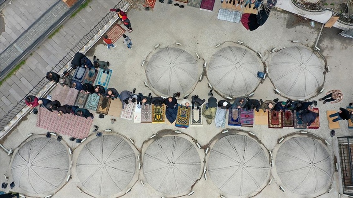 Bu nedenle camiye giremeyen vatandaşlar cuma namazını Ulu Cami'nin yanındaki alanda kıldı.