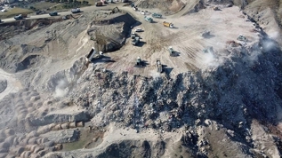 Depremde yıkılan binaların toplandığı enkaz alanı "dağ" gibi yükseliyor